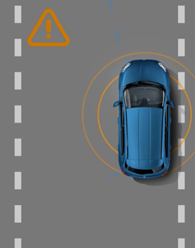 Systém Vás upozorní na neúmyslné vyjetí z jízdního pruhu bez použití směrových světel. Asistent udržování v jízdním pruhu Vás upozorní přímo na přístrojovém panelu a jemným pohybem volantu Vás vrátí zpět do jízdního pruhu. K dispozici pouze ve verzi Sport.