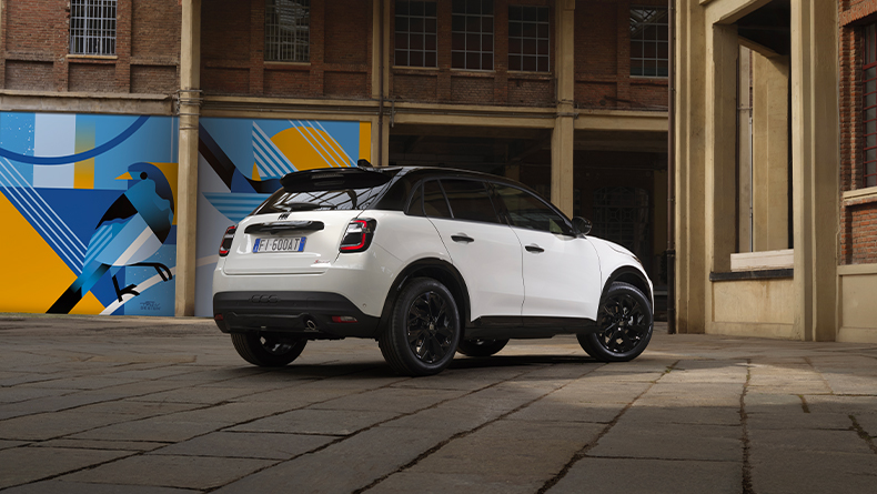 Exkluzivní dvoubarevná kombinace bílé a černé zvýrazňuje linie vozu Fiat 600 Street, podtrhuje jeho dynamické tvary a posiluje jeho odvážný, moderní charakter.
