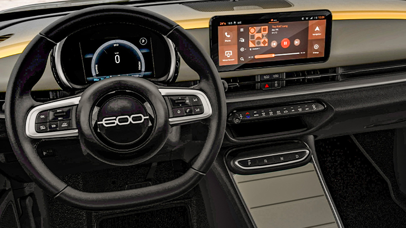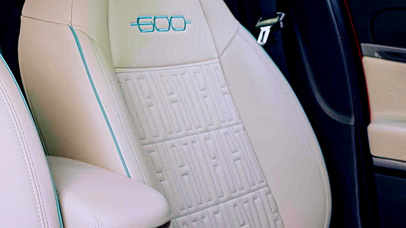 Objevte skutečný životní styl Dolcevita v prémiovém interiéru v odstínu slonoviny s tyrkysovými detaily a monogramy Fiat.
