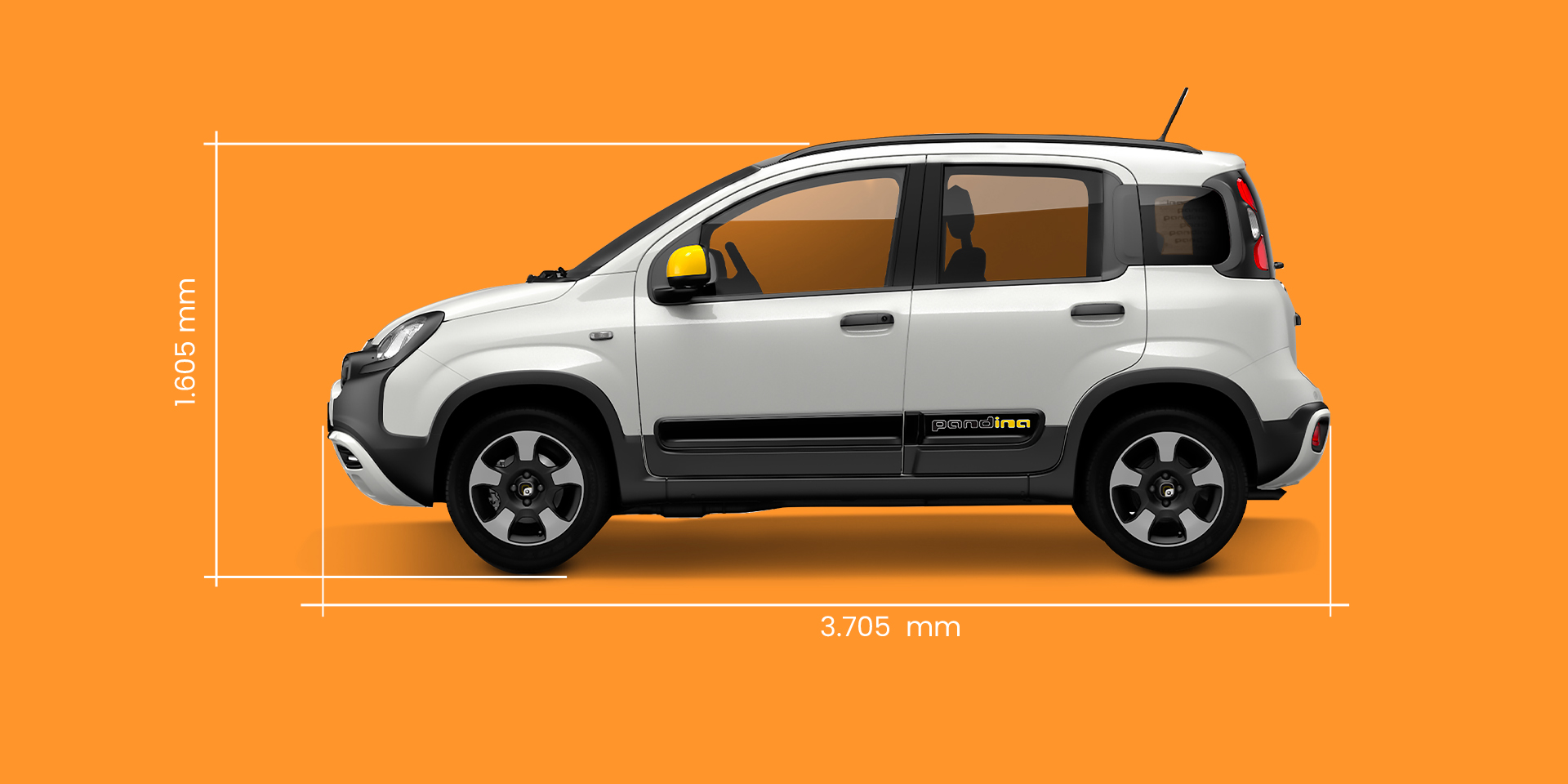 Fiat Pandina je praktický a kompaktní městský vůz, který nabízí maximální všestrannost a volnost pohybu. Fiat Pandina je díky svým rozměrům ideálním městským vozem do městského provozu, ale také pro pohodlné cestování. Fiat Pandina je 3 635 mm dlouhý (3 705 mm verze Pandina), 1 882 mm široký se zrcátky a 1 714 mm se sklopenými zrcátky, 1 551 mm vysoký (1 605 mm verze Pandina). Zavazadlový prostor modelu Pandina o objemu 225 litrů umožňuje pohodlně přepravit vše, co potřebujete pro svá dobrodružství ve městě i mimo něj.