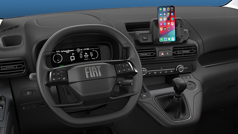 Smartphone stanice: připojení chytrého telefonu k držáku na palubní desce, hlasové ovládání přes telefon, handsfree Bluetooth, 2x USB-C (dobíjení), monochromatický přístrojový panel