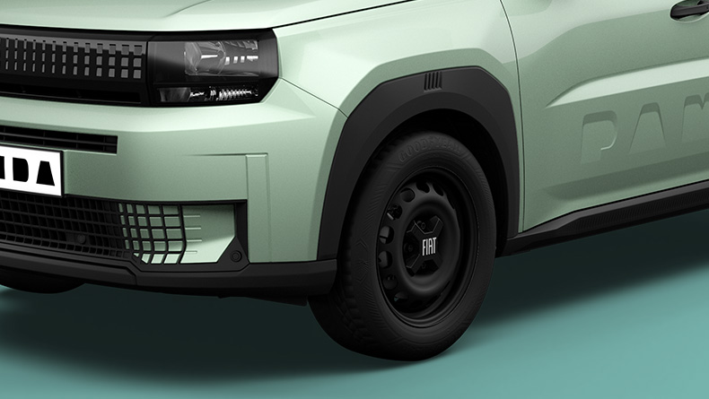Odvážný, elegantní a navržený tak, aby zapůsobil. 16palcová ocelová kola s elegantními kryty kol s logem Grande Panda Pop jsou připravena na cestu, která nezůstane bez povšimnutí.